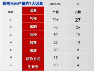 据美国弗雷德教授的科研结果,玉米品种对产量的贡献占19%!也就是说,玉米品种对产量的贡献低于“天气的影响”(对产量影响占比27%),也低于“氮肥的影响”(对产量影响占比26%)。